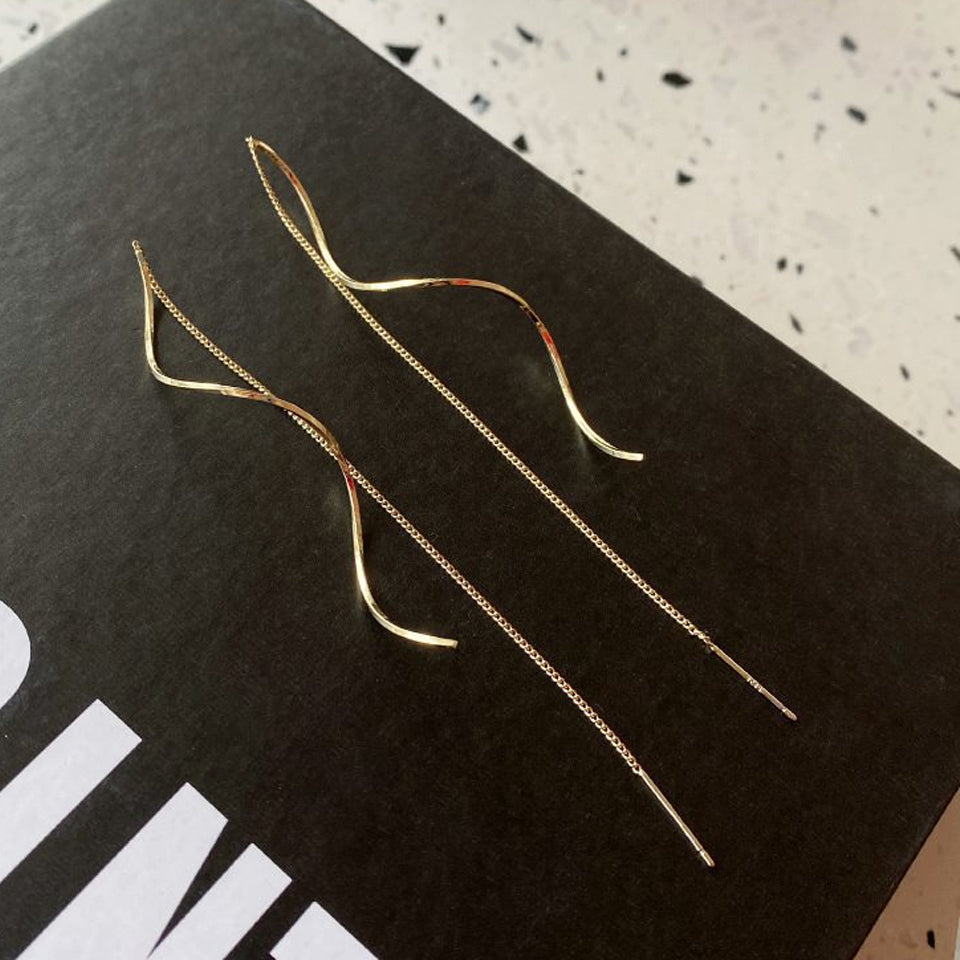Korean Tassel Threader Earrings – Elegant Long Chain Jewelry for Women